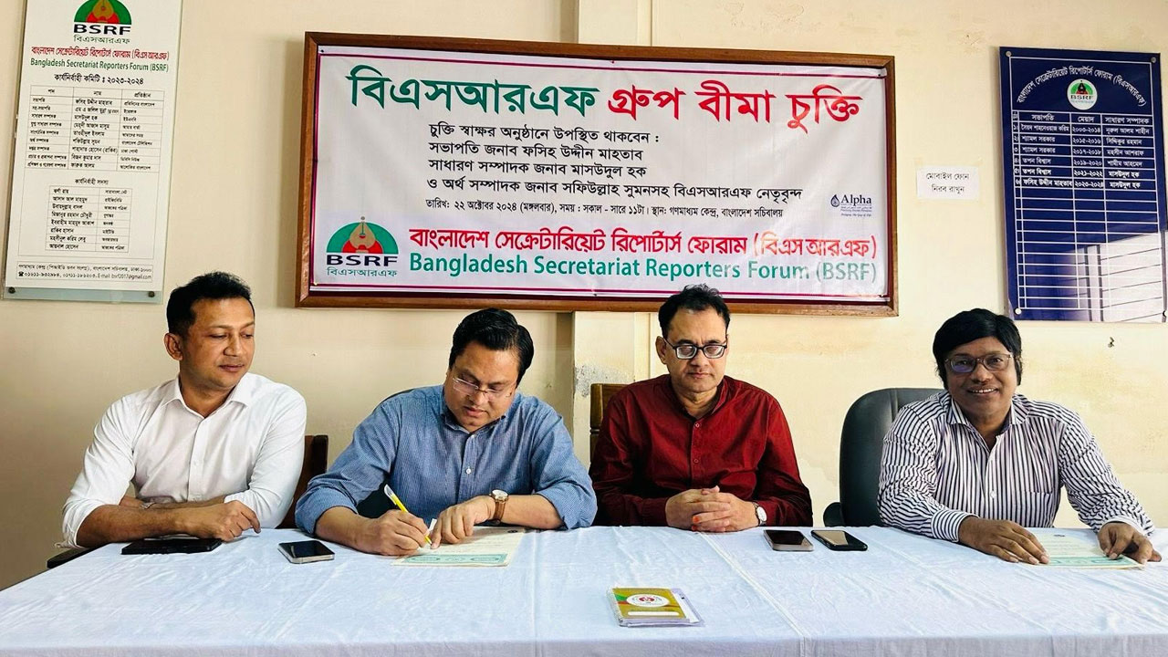 বাংলাদেশ সেক্রেটারিয়েট রিপোর্টার্স ফোরামের (বিএসআরএফ) সদস্যদের জন্য গ্রুপ বিমা চুক্তি স্বাক্ষরিত হয়েছে।