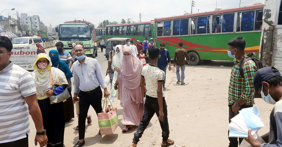 পরিবহন শ্রমিক ভুট্রু মিয়া আসছেন ময়মনসিংহ থেকে। তিনি বলেন, কয়েকটা গাড়ি পরিবর্তন করে আব্দুল্লাহপুর পর্যন্ত এলাম। বাড়িতে সবার সঙ্গে ঈদ করার পাশাপাশি কিছু কাজ ছিল, সেগুলো সারলাম। আসলে এখানে (করোনা) তো মানুষের হাত নেই। আল্লাহ যেটা করবেন সেটা তো হবেই। তাই বাস্তবতা মেনে নিয়েই আমাদের চলতে হবে। জরুরি কাজে তো যেতেই হবে।