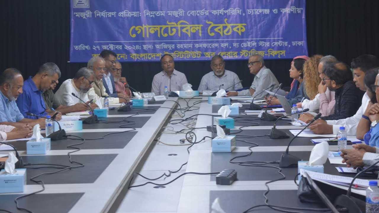 রোববার (২৭ অক্টোবর) রাজধানীর কারওয়ান বাজারের একটি সম্মেলন কক্ষে আয়োজিত এক সভায় বক্তারা এ কথা বলেন। নিম্নতম মজুরি বোর্ডের কার্যকারিতা বিশ্লেষণ এবং করণীয় বিষয়ে বাংলাদেশ ইনস্টিটিউট অব লেবার স্টাডিজ (বিলস) এই টেবিল বৈঠকের আয়োজন করে।