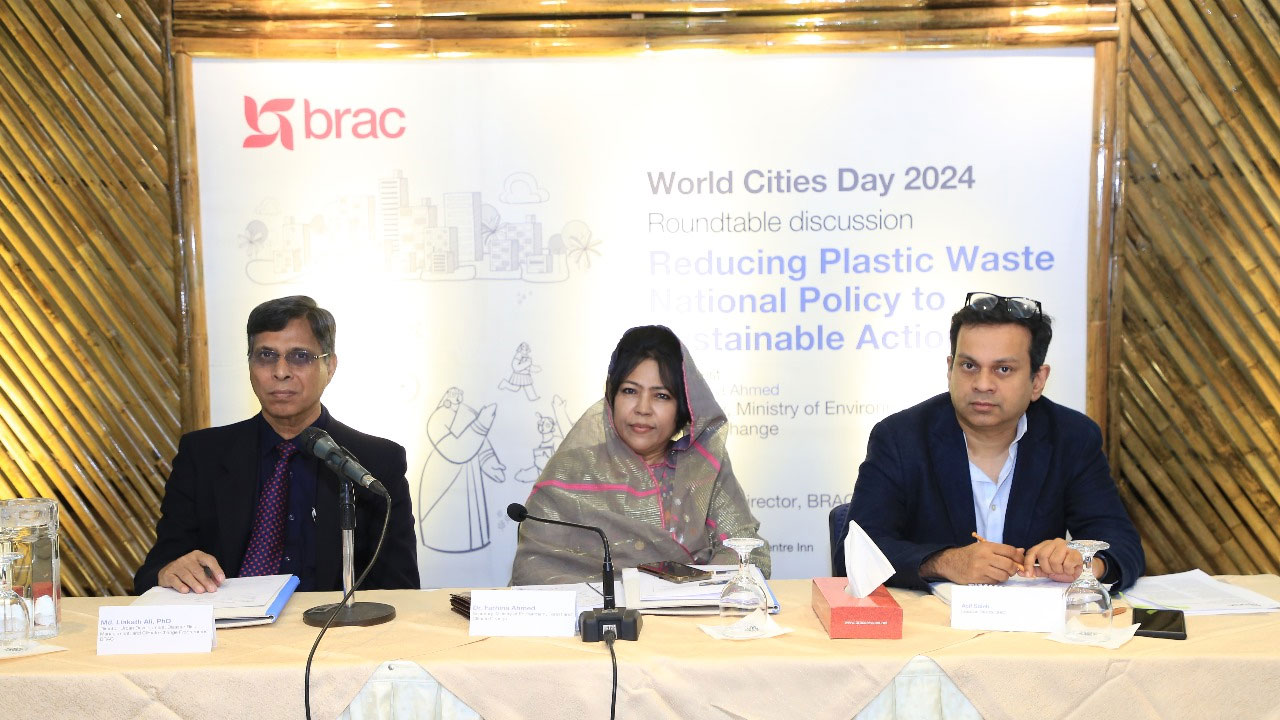 সোমবার (৪ নভেম্বর) মহাখালীর ব্র্যাক সেন্টারে ওয়ার্ল্ড সিটিস ডে উপলক্ষ্যে ব্র্যাক আয়োজিত ‘প্লাস্টিক বর্জ্য হ্রাস, জাতীয় নীতি ও টেকসই পদক্ষেপ’ শীর্ষক গোলটেবিল আলোচনায় বক্তারা এসব কথা বলেন।