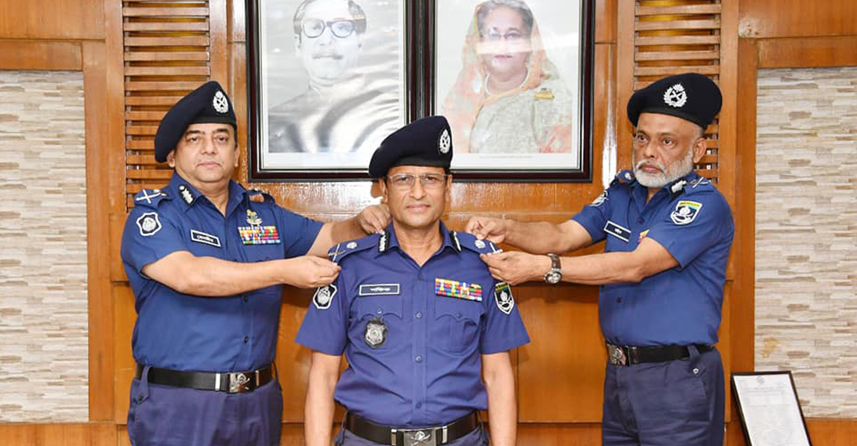 আইজিপি এবং অতিরিক্ত আইজি (এঅ্যান্ডও) ড. মো. মইনুর রহমান চৌধুরী পদোন্নতিপ্রাপ্ত কর্মকর্তাদের র্যাংক ব্যাজ পরিয়ে দেন।