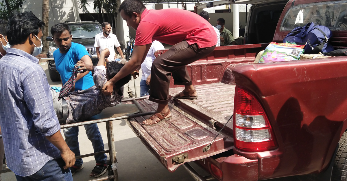 আহতদের গাড়ি থেকে নামানো হচ্ছে