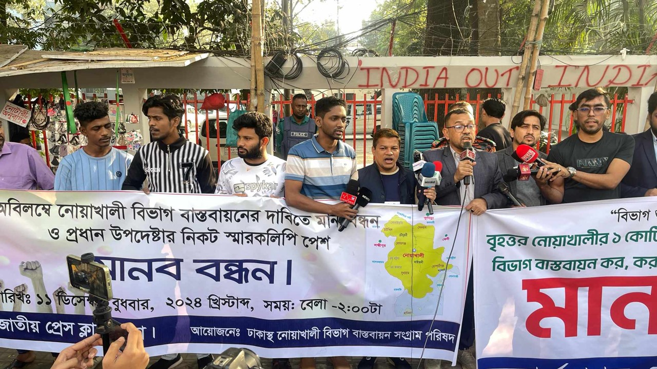 নোয়াখালীকে বিভাগ হিসেবে ঘোষণার দাবিতে মানববন্ধন করেছে ঢাকার নোয়াখালী বিভাগ বাস্তবায়ন সংগ্রাম পরিষদ। বুধবার (১১ ডিসেম্বর) জাতীয় প্রেস ক্লাবের সামনে এই মানববন্ধন আয়োজিত হয়।