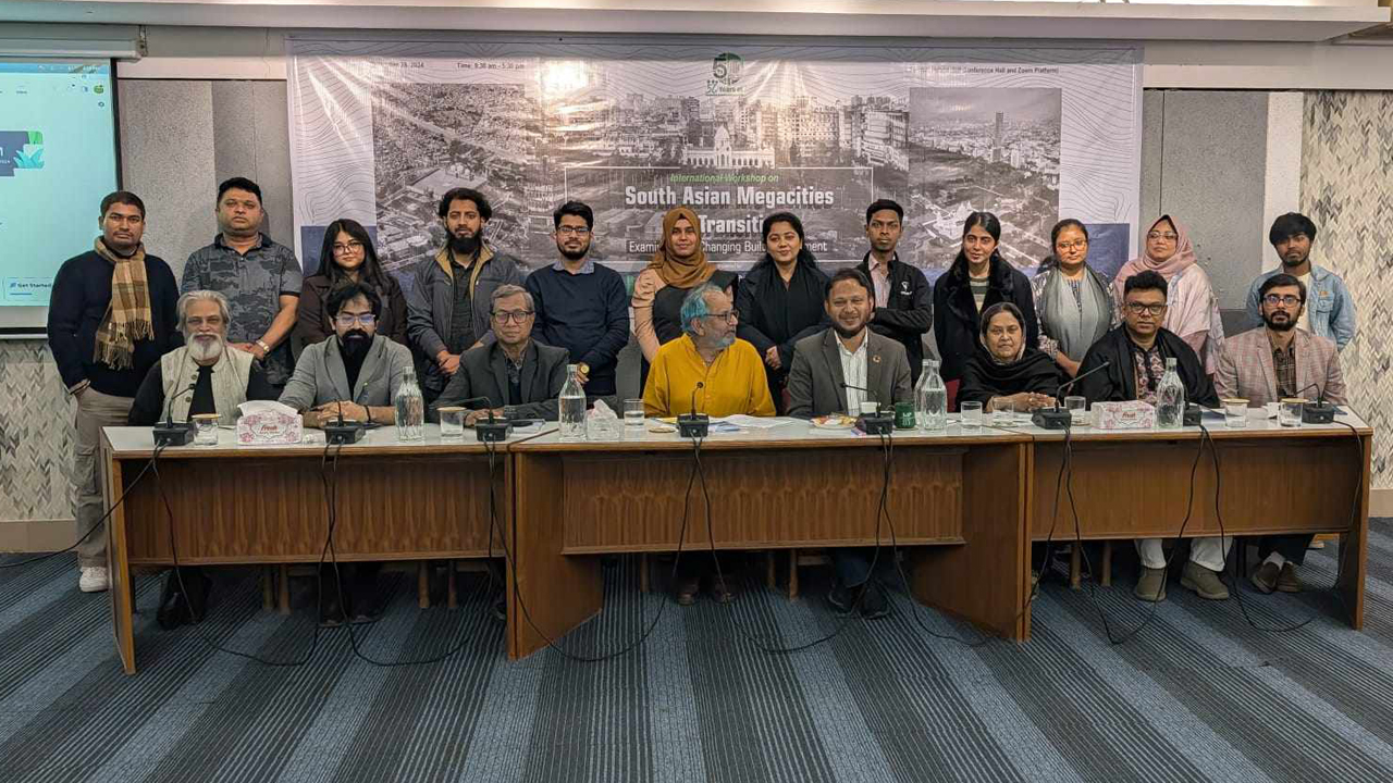 এ কর্মশালার আহ্বায়ক হিসেবে ছিলেন ড. তাসলিম শাকুর, অধ্যাপক আদিল মুহাম্মদ খান, এবং স্থপতি ইমামুর হোসাইন। এতে দক্ষিণ এশিয়ার মেগাসিটির পরিবর্তনশীল নির্মিত পরিবেশ নিয়ে বিশ্লেষণধর্মী আলোচনায় অংশ নেন শিক্ষাবিদ, প্রকৌশলী, নগর পরিকল্পনাবিদ, স্থপতি, পরিবেশবিদ, গবেষক এবং নীতিনির্ধারকরা।