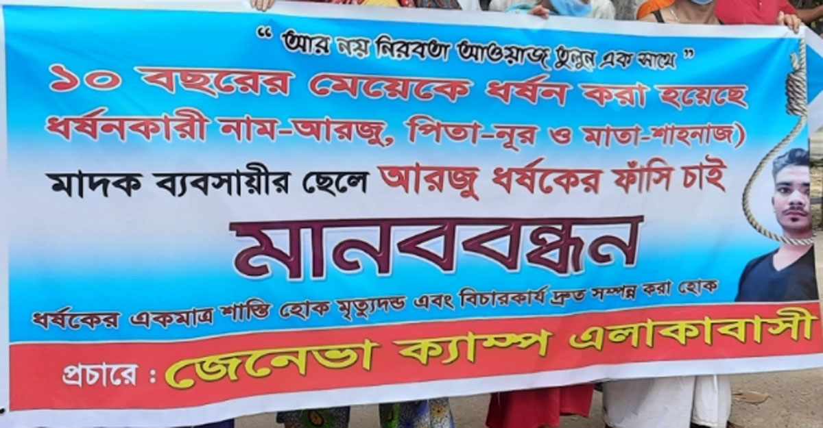 মোহাম্মদপুরের জেনেভা ক্যাম্পে শিশু ধর্ষণের প্রতিবাদে মানববন্ধন করেছে নির্যাতিতার পরিবার। সোমবার (২৪ মে) সকালে জাতীয় প্রেসক্লাবের সামনে এ মানববন্ধন অনুষ্ঠিত হয়।