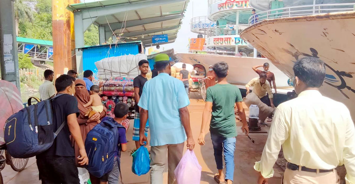 সোমবার রাজধানীর সদরঘাট লঞ্চ টার্মিনাল ঘুরে দেখা যায়, লালকুঠি থেকে বাদামতলী পর্যন্ত অর্ধশতাধিক লঞ্চ টার্মিনালে যাত্রীর জন্য অপেক্ষায় রয়েছে। এর মধ্যে চাঁদপুর, শরীয়তপুর ও বরিশালের মুলাদীগামী লঞ্চ ৪০ মিনিট থেকে এক ঘণ্টা পরপর যাত্রী নিয়ে ছেড়ে যাচ্ছে। স্বাস্থ্যবিধি নিশ্চিত করতে বারবার ঘোষণা দিচ্ছে ঘাট কর্তৃপক্ষ। প্রতিটি লঞ্চে মোট ধারণক্ষমতার অর্ধেক যাত্রী বহন করা হচ্ছে। এ জন্য ভাড়াও নেওয়া হচ্ছে ৬০ ভাগ বেশি।