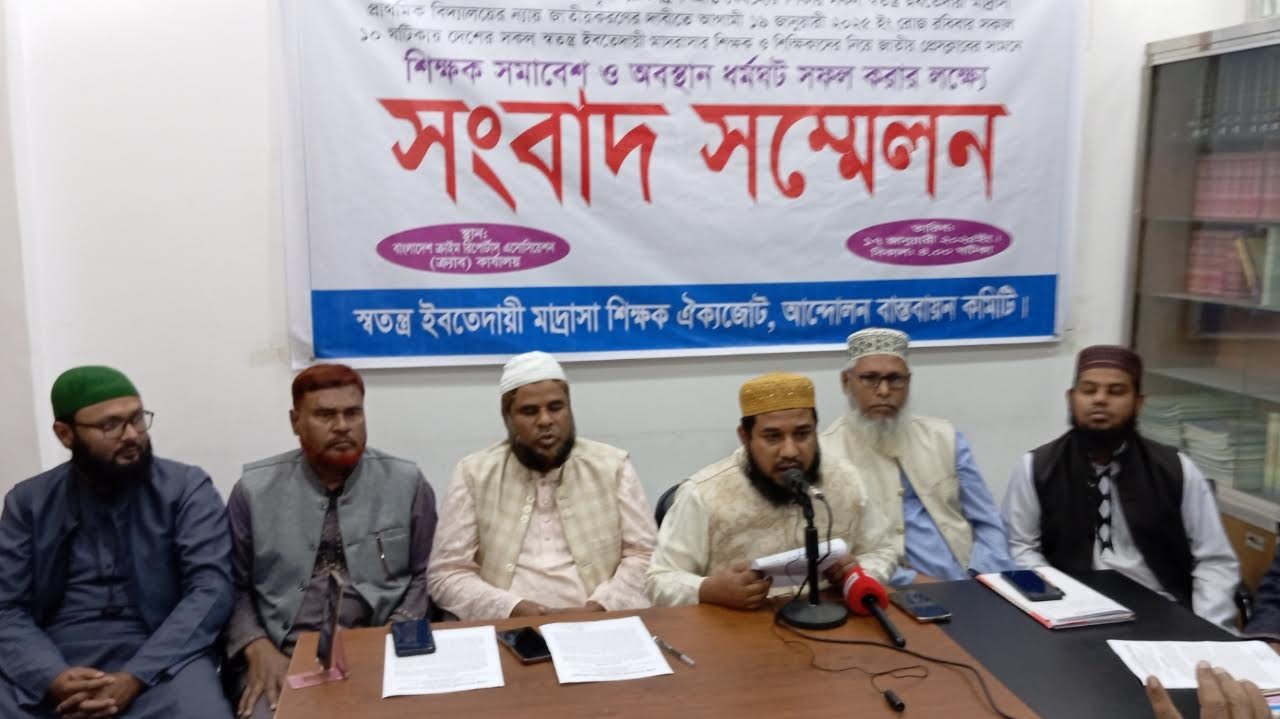 শুক্রবার (১৭ জানুয়ারি) বাংলাদেশ ক্রাইম রিপোর্টার্স অ্যাসোসিয়েশনে (ক্র্যাব) আয়োজিত এক সংবাদ সম্মেলনে এসব কথা জানান স্বতন্ত্র ইবতেদায়ী মাদ্রাসা শিক্ষক ঐক্যজোটের আন্দোলন বাস্তবায়ন কমিটির সদস্য সচিব মোহাম্মদ আল-আমিন।