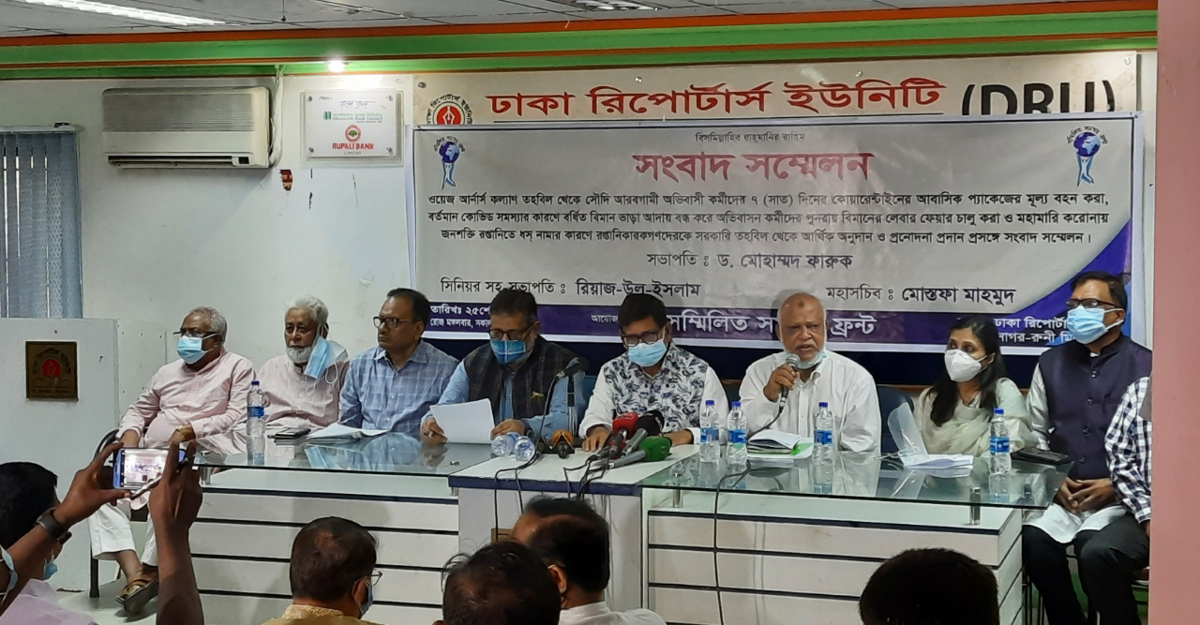 সংবাদ সম্মেলনে লিখিত বক্তব্যে সম্মিলিত সমন্বয় ফ্রন্টের সভাপতি ড. মোহাম্মদ ফারুক বলেন, স্বাধীনতার পর বঙ্গবন্ধুর সঠিক নির্দেশনায় ১৯৭৪ সাল থেকে আমরা জনশক্তি রফতানি করে আসছি। বিগত ৪৫ বছরের বেশি সময়ে এ দেশ থেকে কর্মী রফতানি হয়েছে ২ কোটির ওপরে। আসা যাওয়ার মধ্যে বর্তমানে প্রায় এক কোটি ২ লাখ কর্মী বিদেশে কর্মরত আছে। ৪৫ বছরে তারা দেশে বৈধভাবে পাঠিয়েছে ৩০০ বিলিয়ন ডলার আর হুন্ডির মাধ্যমে পঠিয়েছে ট্রিলিয়ন ডলারের বেশি।