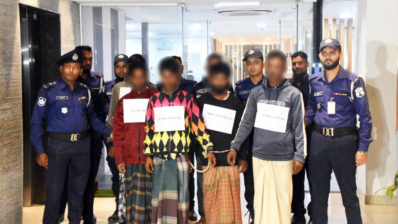 গ্রেপ্তারকৃতরা হলেন- মো. ইসমাইল বেপারি, মো. আমজাদ হোসেন তপু, মো. ফেরদৌস ফরাজী, মো. রিয়াজ হোসেন, মো. সুমন মিয়া, মো. ইউসুফ মিয়া, মো. অনিক মিয়া এবং মো. রানা।
