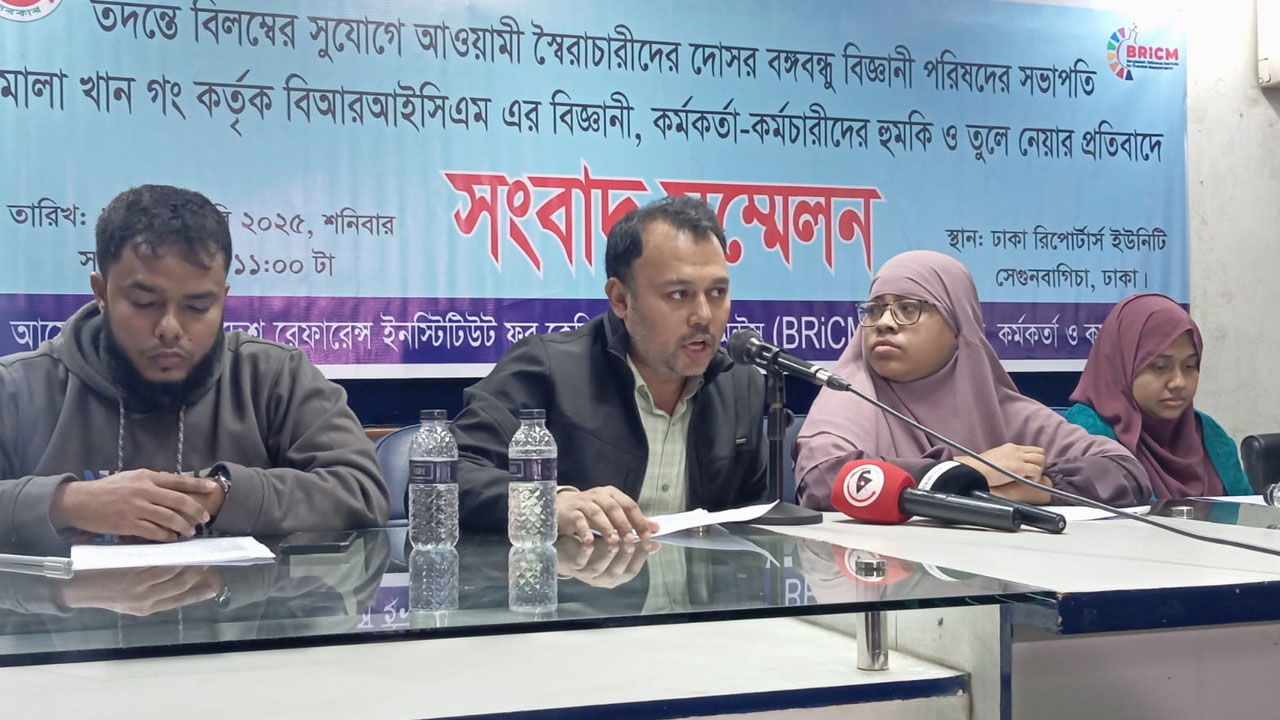 সংবাদ সম্মেলনে লিখিত বক্তব্য উপস্থাপন করেন বিআরআইসিএমের সিনিয়র সাইন্টিস্ট অফিসার জাবেদ বিন আহমেদ। এসময় তিনি বলেন, যেই মুহূর্তে আমরা এ সংবাদ সম্মেলন করছি ঠিক সেই মুহূর্তে আমাদের সহকর্মী ও ফ্যাসিস্ট সরকারের দোসর মালা খানের দুর্নীতি-অপকর্মের বিরুদ্ধে আন্দোলনের অন্যতম যোদ্ধা এবং বৈজ্ঞানিক কর্মকর্তা মশিউর রহমান মিথ্যা মামলার আসামি হিসেবে কারাবরণ করছেন। কিন্তু অবৈধ পিএইচডি ডিগ্রিধারী, দুর্নীতিপরায়ণ এবং গোপন আয়নাঘরের প্রতিষ্ঠাতা মালা খান এখনও বহাল তবিয়তে। এমনকি গত ৫ আগস্টের পূর্বে যারা ছাত্র জনতার আন্দোলনের পক্ষে ছিলেন, তাদের মামলা-হামলাসহ নানাভাবে হয়রানি করে যাচ্ছেন।