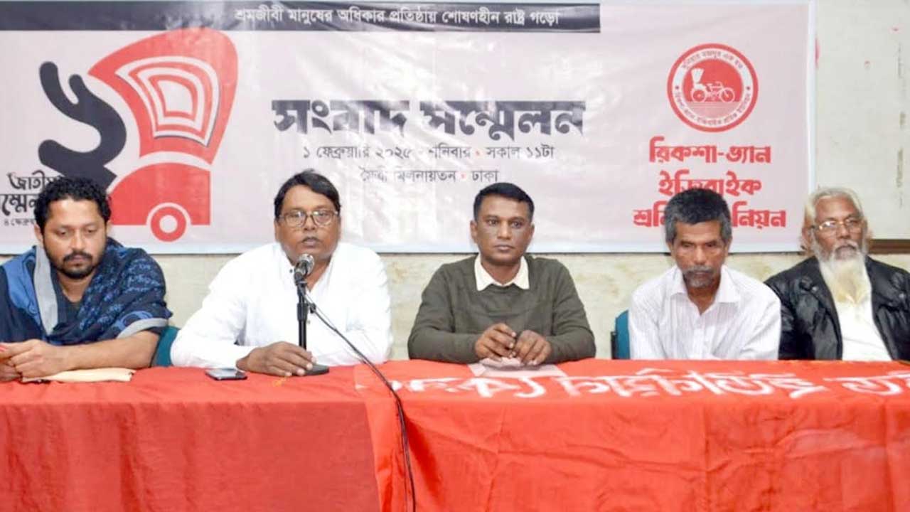 শনিবার (১ ফেব্রুয়ারি) পল্টনের মুক্তি ভবনের মৈত্রী মিলনায়তনে আয়োজিত এক সংবাদ সম্মেলন এ কথা জানান রিকশা-ভ্যান-ইজিবাইক শ্রমিক ইউনিয়নের যুগ্ম সাধারণ সম্পাদক আরিফুল ইসলাম নাদিম।