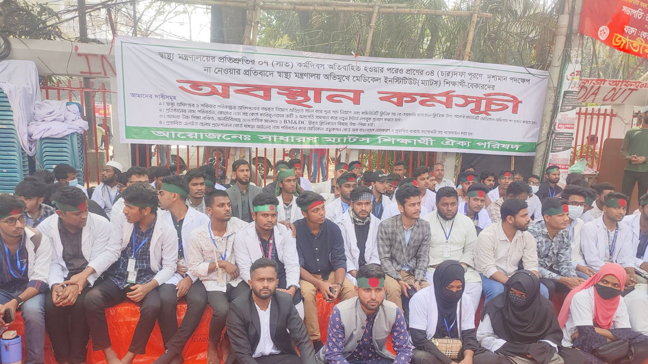 দাবি আদায় ছাড়া রাজপথ ছাড়বেন না, অনড় ম্যাটস শিক্ষার্থীরা