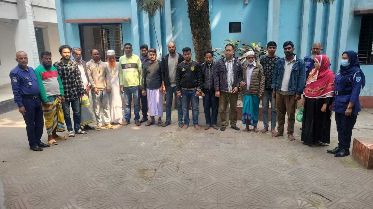 গ্রেপ্তাররা হলেন- সাভারের বনাগাঁও ইউনিয়ন এলাকার সাধাপুর পুরানবাড়ি মহল্লার মৃত ইসরাফিল হাওলাদার ছেলে মো. দেলোয়ার হোসেন (৫৭), একই ইউনিয়নের বলিয়ারপুর মধ্যপাড়া মহল্লার মৃত বশিরউদ্দিনের ছেলে মো. রুহুল আমিন (৫৫), সাভার পৌর এলাকার দক্ষিণ রাজাশন মহল্লার মো. শাহ আলমের ছেলে শাহাদাত হোসেন (৩৪), ডগরমোড়ার সিআরপি মহল্লার মৃত আক্তার মাঝির ছেলে মো. আনোয়ার হোসেন মাঝি (৪৪), দিলখুসবাগ মহল্লার মৃত ফয়েজ উল্লাহর ছেলে ও কৃষকলীগ নেতা মো. সেলিম ভূঁইয়া (৫০), উত্তর পাড়া মহল্লার মৃত ইব্রাহিম মোল্লার ছেলে ও সাভার উপজেলা চেয়ারম্যান মঞ্জুরুল আলম রাজিবের মামা আখতারুজ্জামান (কুটি মোল্লা), কাউন্দিয়া ইউনিয়নের আ. রশিদ মাস্টারের মেয়ে ও ১ নং ওয়ার্ড মহিলা আওয়ামী লীগ সভাপতি আসমা খানম শিল্পি (৩৭), একই ইউনিয়নের মৃত মোহাম্মদ জাহাঙ্গীর আলমের ছেলে ও যুবলীগ কেন্দ্রীয় কমিটির সাধারণ সম্পাদক এবং এমপি মইনুল হোসেন খান নিখিলের পিএস আবু বকর সিদ্দিকি (৪৮), বাগসাত্রা মহল্লার মৃত আ. মান্নানের ছেলে ও কাউন্দিয়া ইউপি আওয়ামী যুবলীগের সহসভাপতি মো. আব্দুর রাজ্জাক (৪৩), তেঁতুলঝড়া ইউনিয়নের যাদুরচর মহল্লার মো. মোসলেম উদ্দিনের ছেলে মো. নাছির হোসেন (২৪), একই ইউনিয়নের রাজফুলবাড়ীয়া এলাকার কৃষ্ণনগর মহল্লার শাহাদাত হোসেনের ছেলে ও তেঁতুলঝোড়া ২ নং ওয়ার্ডের সভাপতি এবং তেঁতুলঝোড়া ইউনিয়ন ছাত্রলীগের পাঠাগার বিষয়ক সম্পাদক যুবরাজ ইসলাম মিলন (২২), আমিন বাজার ইউনিয়নের বড়দেশী পশ্চিমপাড়া মহল্লার মৃত লাল বাদশা ফকিরের ছেলে ও আমিন বাজার ২ নং ওয়ার্ড আওয়ামী লীগ নেতা মো. শওকত আলী (৬৫), কেরানীগঞ্জের কানারচর মহল্লার আলাউদ্দিন আলার ছেলে ও হযরতপুর ইউনিয়নের আওয়ামী লীগের আহ্বায়ক কমিটির যুগ্ম আহ্বায়ক সাইফুল ইসলাম (৩৪)।