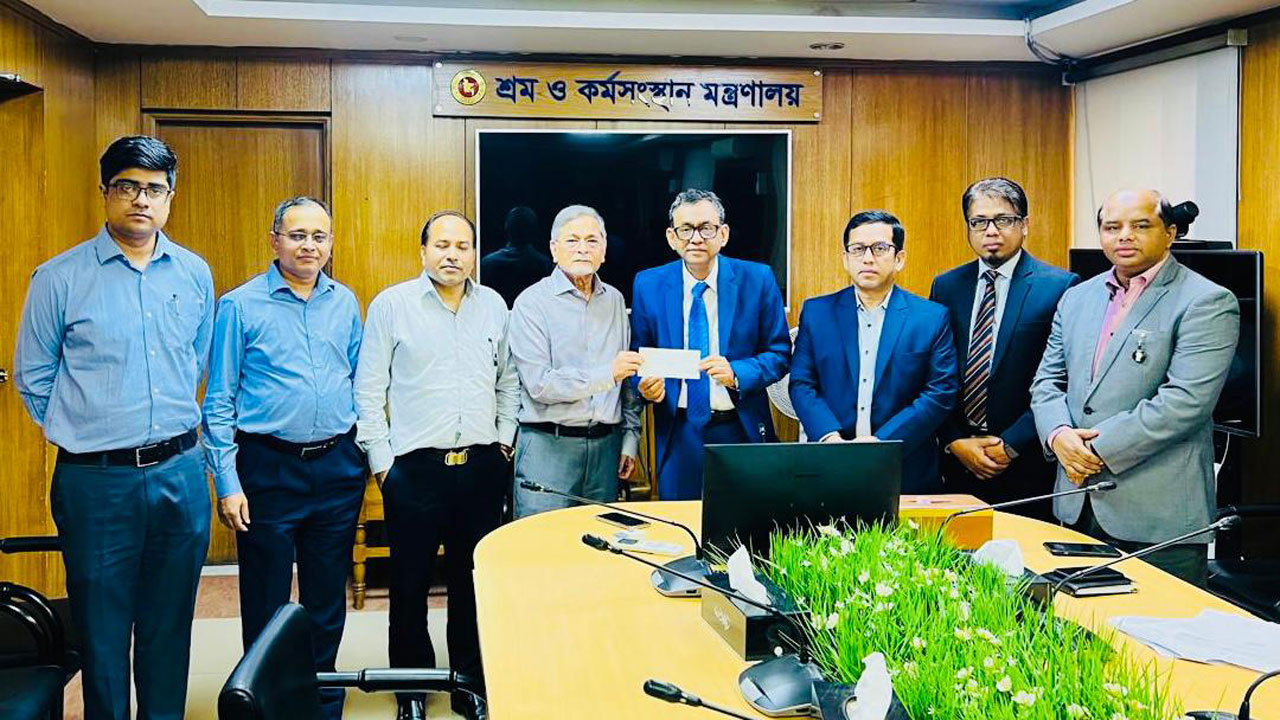 বৃহস্পতিবার (০৬ ফেব্রুয়ারি) সচিবালয়ে শ্রম ও কর্মসংস্থান মন্ত্রণালয়ের সচিব এ এইচ এম সফিকুজ্জামান বাংলাদেশ এক্সপোর্ট ইমপোর্ট কো. লি. এর ব্যবস্থাপনা পরিচালক ওসমান কায়সার চৌধুরীর কাছে ৫২৫ কোটি ৪৬ লাখ টাকার চেক হস্তান্তর করেন।