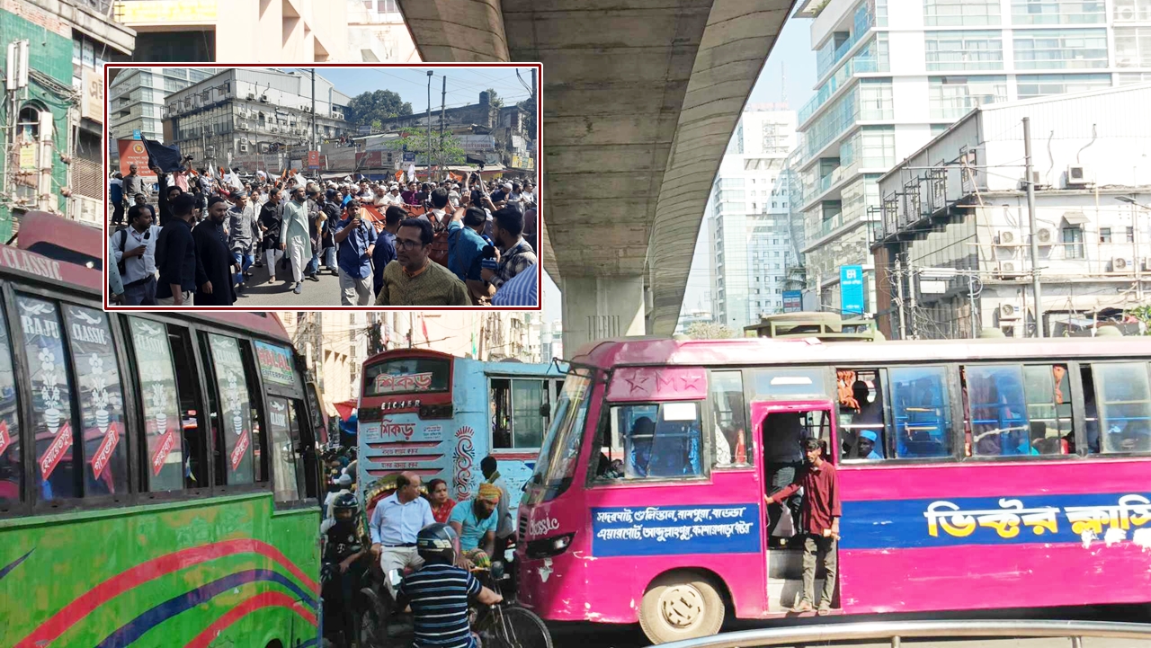 এদিকে মিছিলের কারণে পল্টন-বায়তুল মোকাররম এলাকায় সড়কে যান চলাচল বন্ধ হয়ে যায়। এতে করে গাড়ির দীর্ঘ জট পড়ে সড়কে।