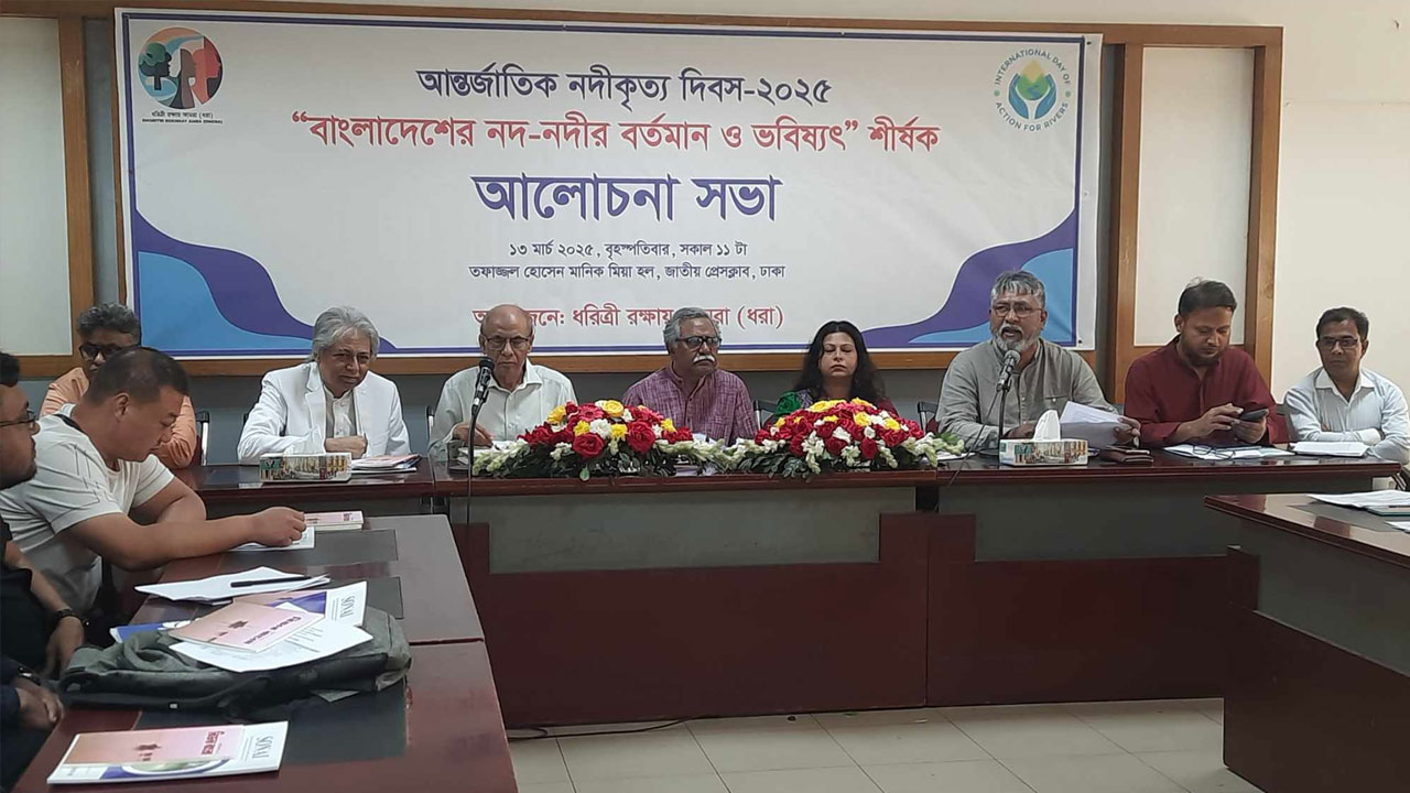 বৃহস্পতিবার (১৩ মার্চ) জাতীয় প্রেস ক্লাবের তফাজ্জল হোসেন মানিক মিয়া হলে ‘বাংলাদেশের নদ-নদীর বর্তমান ও ভবিষ্যৎ’ শীর্ষক এক আলোচনা সভায় প্রধান অতিথির বক্তব্যে তিনি এ মন্তব্য করেন। আন্তর্জাতিক নদীকৃত্য দিবস- ২০২৫ উপলক্ষ্যে এ আলোচনা সভার আয়োজন করে ধরা।