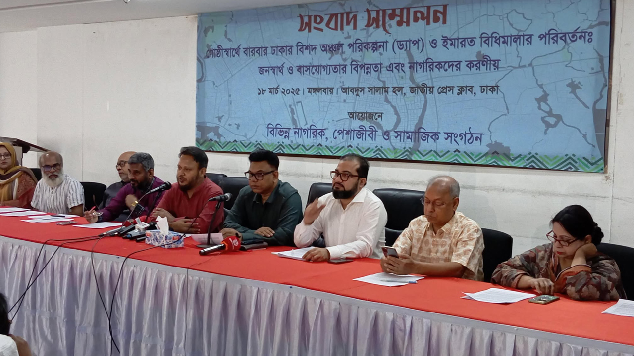 মঙ্গলবার (১৮ মার্চ) ‘গোষ্ঠীস্বার্থে বারবার ঢাকার বিশদ অঞ্চল পরিকল্পনা (ড্যাপ) ও ইমারত নির্মাণ বিধিমালার পরিবর্তন : জনস্বার্থ ও বাসযোগ্যতার বিপন্নতা এবং নাগরিকের করণীয়’ শীর্ষক সংবাদ সম্মেলনে মূল প্রবন্ধ উপস্থাপনের সময় এ মন্তব্য করেন তিনি। সংবাদ সম্মেলনের আয়োজন করে ’বিভিন্ন নাগরিক, পেশাজীবী ও সামাজিক সংগঠন’।