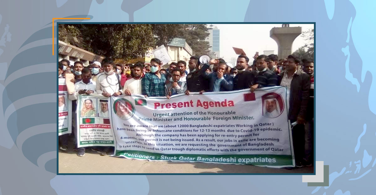দেশে আটকে পড়া প্রবাসীদের কাতার যাওয়ার ব্যবস্থা গ্রহণের দাবিতে ফের পররাষ্ট্র মন্ত্রণালয়ের সামনে বিক্ষোভ হয়েছে। তারা এই সমস্যা সমাধানে প্রধানমন্ত্রী শেখ হাসিনার হস্তক্ষেপ কামনা করেছেন।