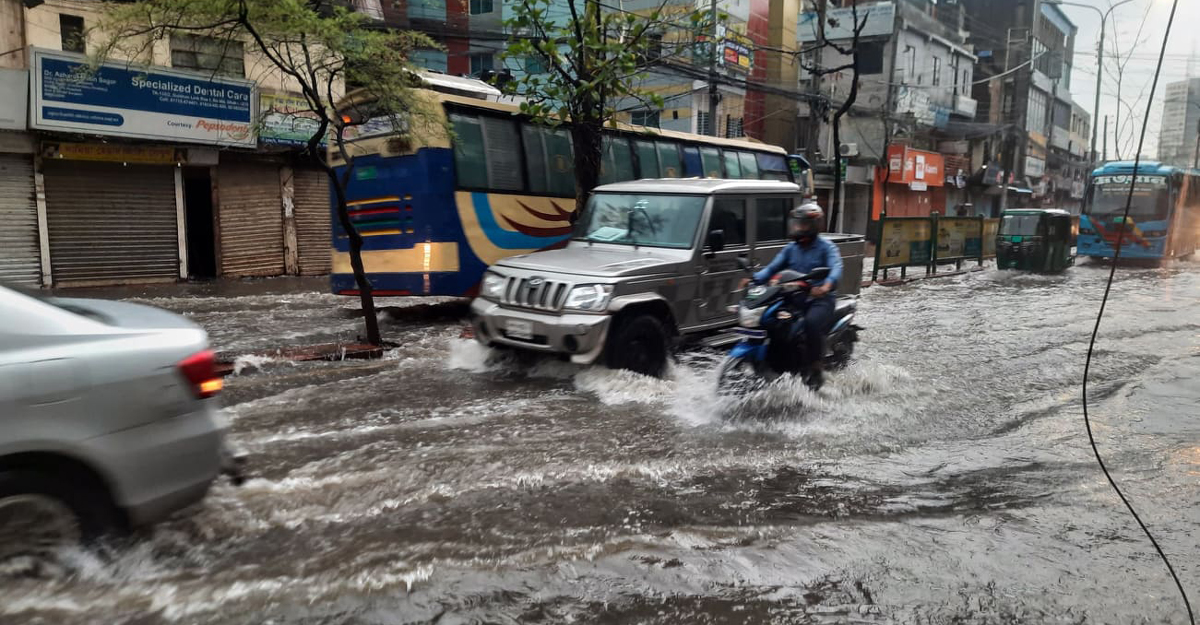 মুষলধারে বৃষ্টিতে ডুবেছে রাজধানীর সড়ক
