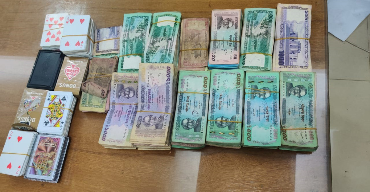 জব্দ করা টাকা ও জুয়া খেলার সরঞ্জাম