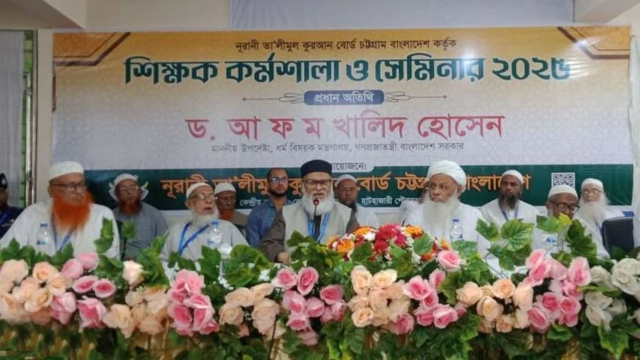 শনিবার (১৯ এপ্রিল) চট্টগ্রামের হাটহাজারী নূরানী তালীমুল কুরআন বোর্ড-চট্টগ্রাম কর্তৃক আয়োজিত ‘শিক্ষক কর্মশালা ও সেমিনার’ অনুষ্ঠানে প্রধান অতিথির বক্তব্যে তিনি এ কথা বলেন।