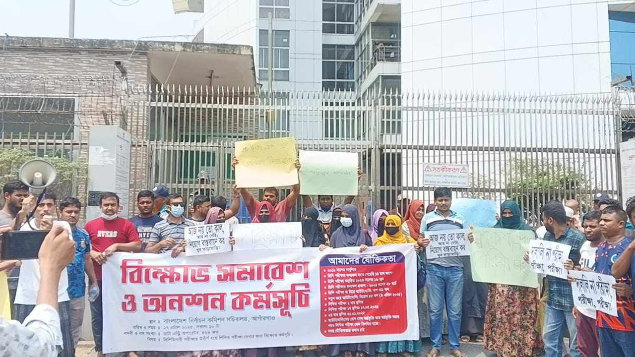 সিরাজগঞ্জ থেকে আসা কামরুজ্জামান বলেন, আমরা প্রিলি পরীক্ষায় উত্তীর্ণ হয়েছি। কিন্তু আমাদের লিখিত পরীক্ষা নেওয়া হচ্ছে না। কিন্তু আমাদের বেশিরভাগের চাকরির বয়স শেষ হওয়া পথে। আমরা লিখিত পরীক্ষার দাবিতে বিক্ষোভ করছি। আমাদের লিখিত পরীক্ষা নিয়ে কমিশন কিছু না জানালে আমরা কাউকে ঢুকতে দেব না বলেও জানান তিনি।