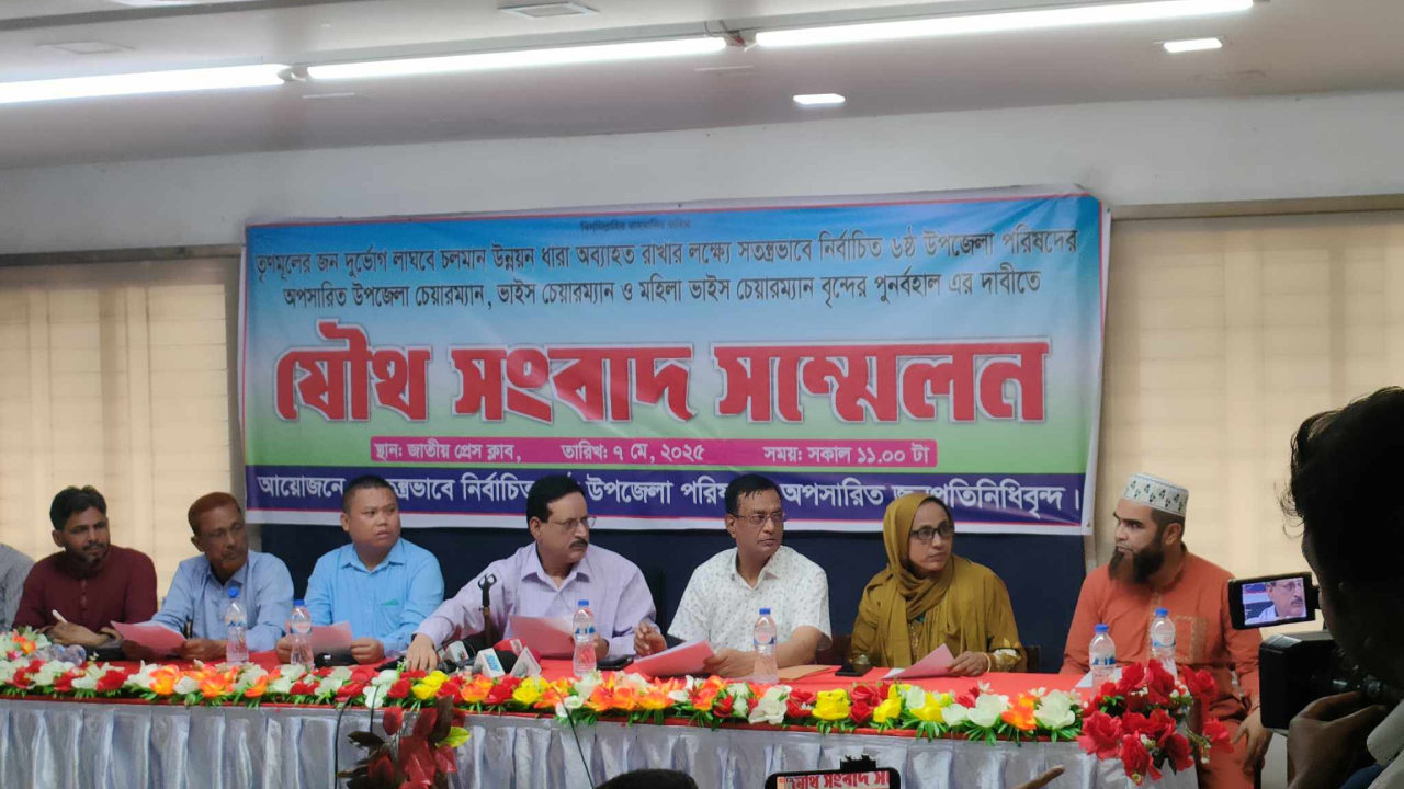 সংবাদ সম্মেলনের আয়োজন করে ‘স্বতন্ত্রভাবে নির্বাচিত ষষ্ঠ উপজেলা পরিষদের অপসারিত জনপ্রতিনিধিবৃন্দ।’