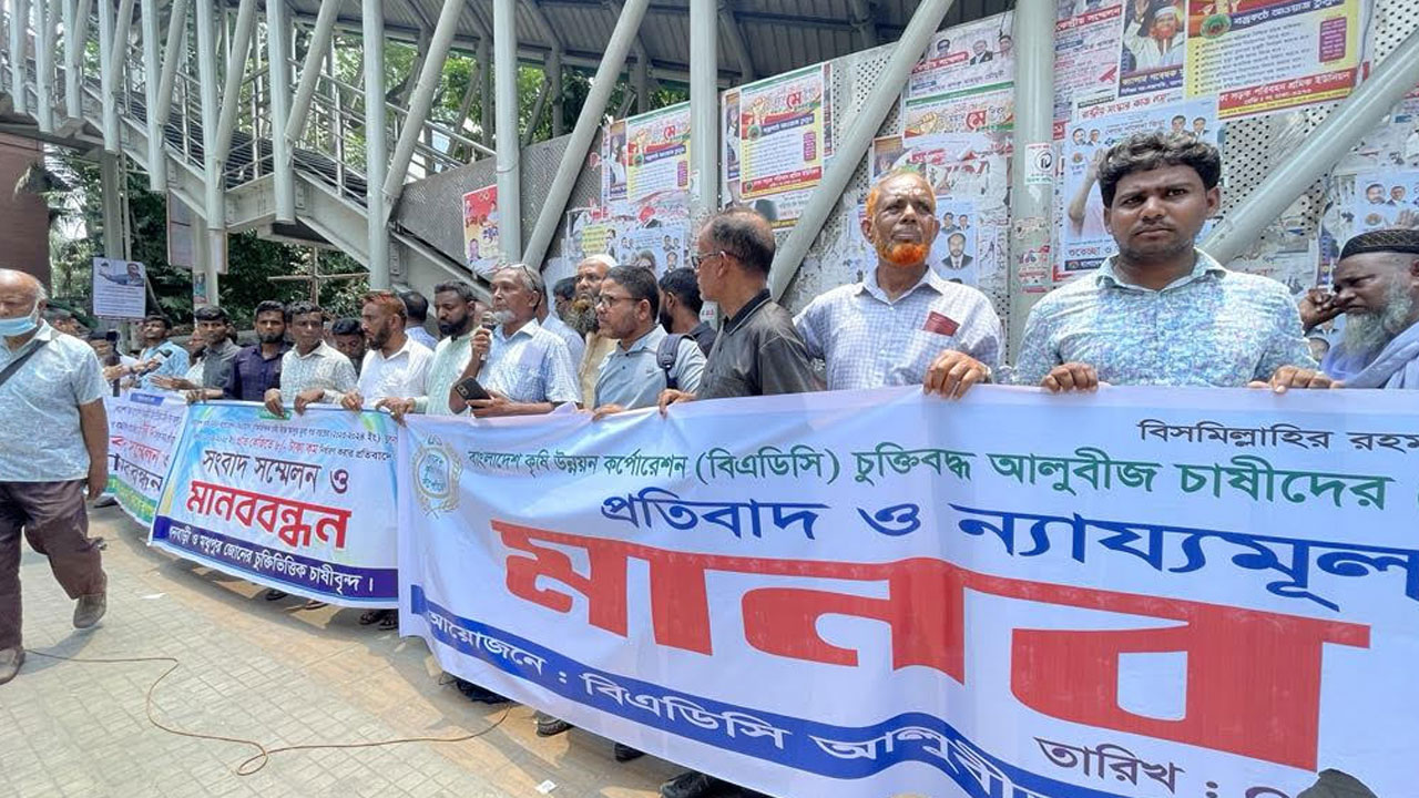 বক্তারা বলেন, ২০২৩-২০২৪ অর্থ বছরে আমরা বাংলাদেশ কৃষি উন্নয়ন কর্পোরেশন (বিএডিসি) থেকে ৪৮ থেকে ৫৪ টাকা দরে বীজ ক্রয় করেছিলাম। বীজ থেকে উৎপাদিত আলুর দর পেয়েছি ৩৫ থেকে ৩৭ টাকা কেজি। অথচ বাইরে এই আলু বিক্রি হয়েছে ৭০ থেকে ৮০ টাকা দরে। কিন্তু আমরা বিএডিসির সাথে চুক্তিবদ্ধ বলে বাইরে কোনো আলু বিক্রি করিনি। যার ফলশ্রুতিতে বিএডিসি ব্যাপক লাভবান হয়েছে।