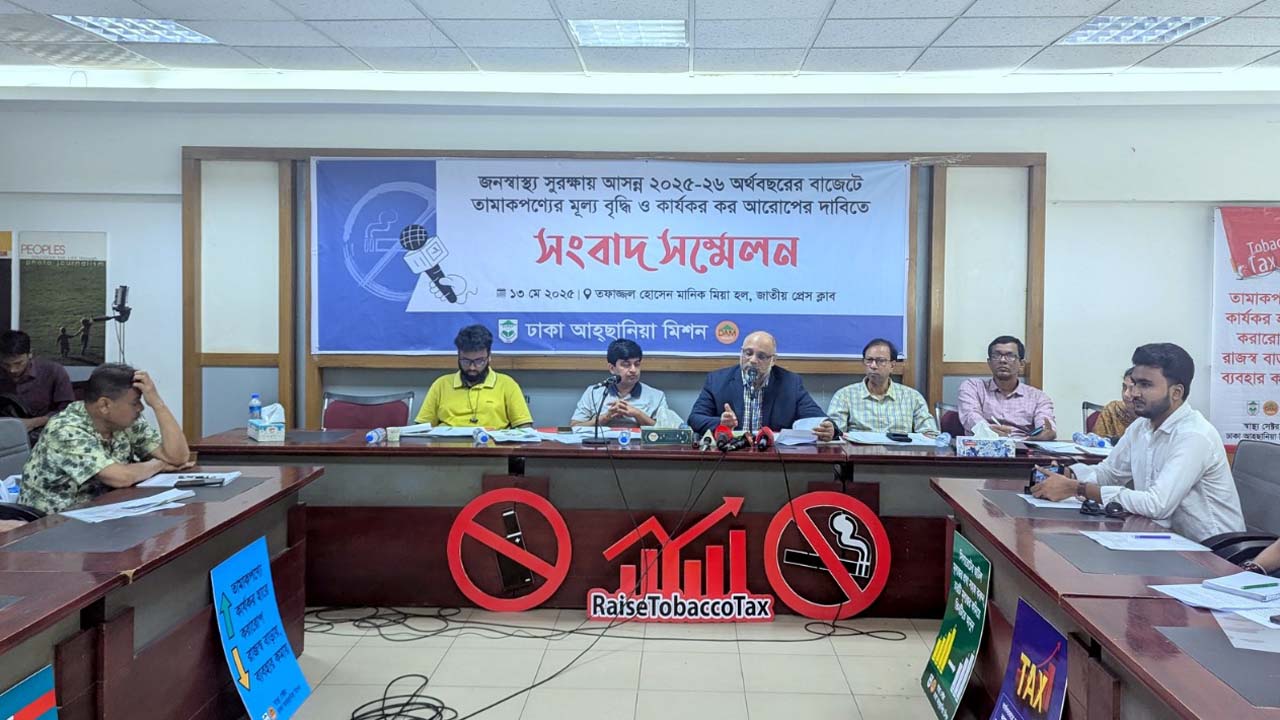 মঙ্গলবার (১৩ মে) জাতীয় প্রেস ক্লাবে আহছানিয়া মিশন আয়োজিত জনস্বাস্থ্য সুরক্ষায় আসন্ন ২০২৫-২৬ অর্থবছরের বাজেটে তামাকপণ্যের মূল্য বৃদ্ধি ও কার্যকর কর আরোপের দাবি শীর্ষক সংবাদ সম্মেলনে এমন দাবি জানানো হয়।