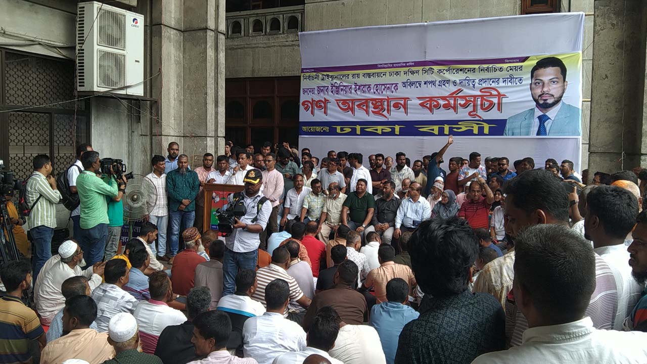 বিএনপি নেতা ইশরাক হোসেনকে ঢাকা দক্ষিণ সিটি কর্পোরেশনের (ডিএসসিসি) মেয়র পদে বসানোর দাবিতে দ্বিতীয় দিনের মতো অবস্থান কর্মসূচি পালন শেষে ফের শনিবার একই কর্মসূচি পালন করবে বিক্ষোভকারীরা। আজ সকাল থেকে দুপুর পর্যন্ত কর্মসূচি পালনের পর নগরভবন ছেড়েছে তারা।