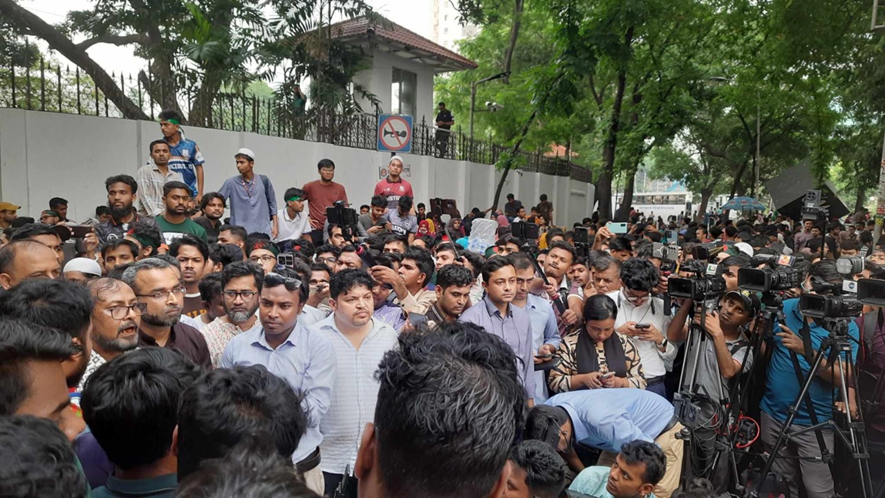 এর আগে বিকেলে অধ্যাপক রইস উদ্দিন বলেন, আমরা এখানে জগন্নাথ বিশ্ববিদ্যালয়ের অধিকার নিয়ে এসেছি। জগন্নাথ বিশ্ববিদ্যালয়ের দাবি আদায়ের জন্য এসেছি। আমাদের ওপর পুলিশ নির্বিচারে হামলা চালিয়েছে। এটি সম্পূর্ণ অরাজকতা এবং অন্যায়। আমরা কারও বিরুদ্ধে এখানে কথা বলতে আসিনি, কোনো ষড়যন্ত্র করতে আসিনি। আমাদের অধিকার চাইতে এসেছি। দাবি আদায় না করে আমরা ঘরে ফিরব না। দাবি আদায়ের আগ পর্যন্ত জগন্নাথ বিশ্ববিদ্যালয়ে শাটডাউন চলবে। জগন্নাথ বিশ্ববিদ্যালয়ের কোনো ক্লাস ও পরীক্ষা কার্যক্রম চলবে না। দাবি আদায় করে আমরা ঘরে ফিরব।