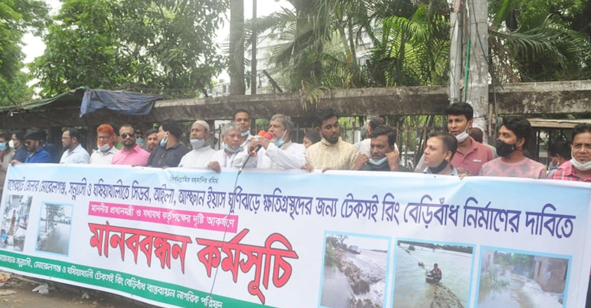 মানববন্ধনে বক্তারা বলেন, পরিবেশ দিবসে সরকারের কাছে দাবি জানাই বেড়িবাঁধ নির্মাণের এখনই সময়। আমরা দেখেছি সর্বশেষ ঘূর্ণিঝড় ইয়াসের তাণ্ডব। জলবায়ু পরিবর্তনের নেতিবাচক প্রভাবে প্রতিনিয়ত বাংলাদেশে বিভিন্ন ধরনের খরা ও জলোচ্ছ্বাস তৈরি হচ্ছে। পাশাপাশি ভূমিকম্প যেন নিত্যদিনের সঙ্গী হয়ে দাঁড়িয়েছে।