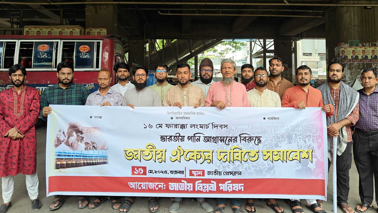 বৃহস্পতিবার (১৬ মে) জাতীয় প্রেস ক্লাবের সামনে জাতীয় বিপ্লবী পরিষদ আয়োজিত ঐতিহাসিক ফারাক্কা দিবস উপলক্ষ্যে এক সমাবেশে এ দাবি জানান বক্তারা।