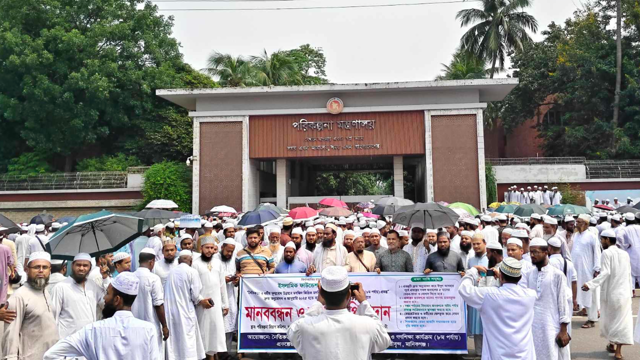 মসজিদভিত্তিক শিশু ও গণশিক্ষা কার্যক্রম প্রকল্প শিক্ষকদের মানববন্ধন