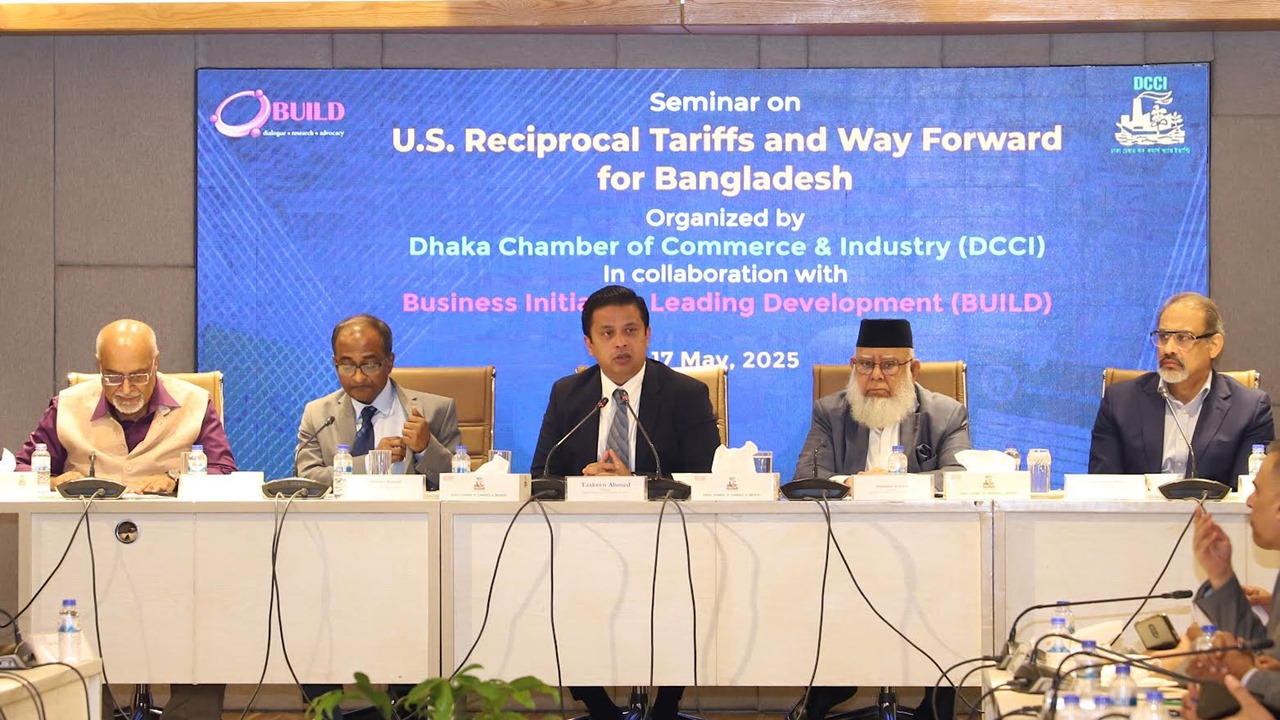 শনিবার (১৭ মে) ঢাকা চেম্বার অব কমার্স অ্যান্ড ইন্ডাস্ট্রি (ডিসিসিআই) এবং বিজনেস ইনিশিয়েটিভ লিডিং ডেভেলপমেন্ট (বিল্ড) যৌথভাবে আয়োজিত যুক্তরাষ্ট্রের পারস্পরিক শুল্ক এবং বাংলাদেশের কর্ম-পরিকল্পনা— শীর্ষক সেমিনারে তিনি এমন মন্তব্য করেন।