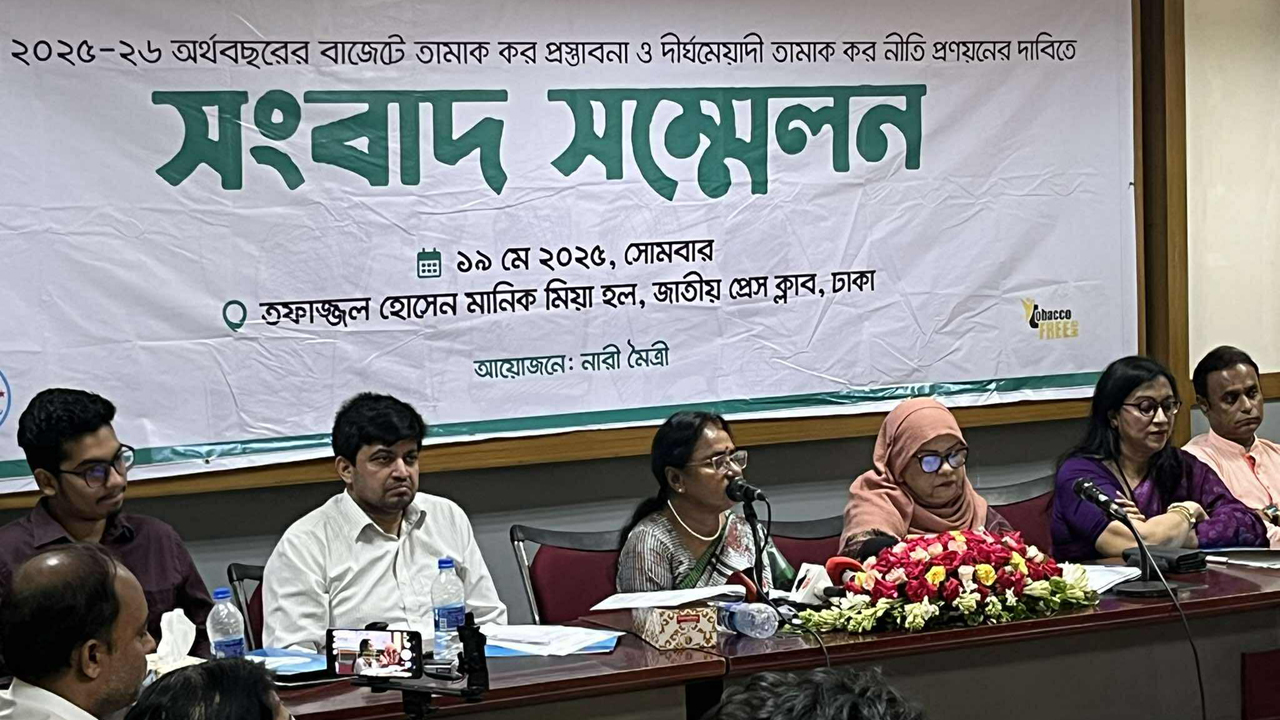 মঙ্গলবার (১৯ মে) জাতীয় প্রেস ক্লাবে ‘জনস্বাস্থ্য সুরক্ষায় আসন্ন ২০২৫-২৬ অর্থবছরের বাজেটে তামাক পণ্যের কার্যকর কর ও মূল্য বৃদ্ধির দাবি’ শীর্ষক এক সংবাদ সম্মেলনে এ দাবি জানানো হয়।