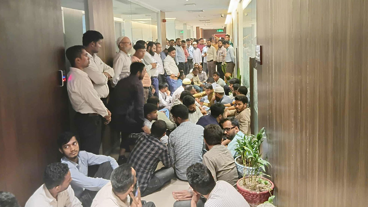 পরে তারা অর্থ মন্ত্রণালয়ে এসে তারা উপদেষ্টার অফিস কক্ষের সামনের করিডোরে বসে অবস্থান নেয়।