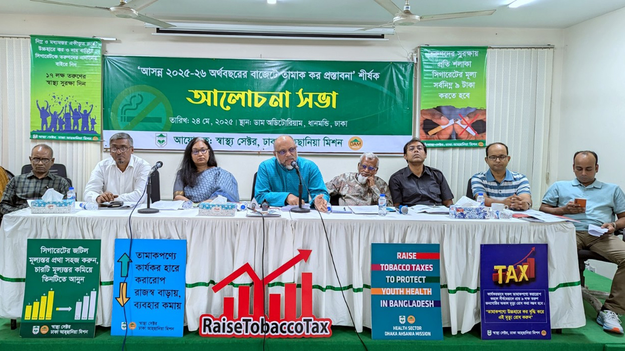 শনিবার (২৪ মে) ঢাকা আহছানিয়া মিশনের অডিটোরিয়ামে ‘আসন্ন ২০২৫-২৬ অর্থবছরের বাজেটে তামাক কর প্রস্তাবনা’ শীর্ষক আলোচনা সভায় এসব তথ্য জানান তারা।