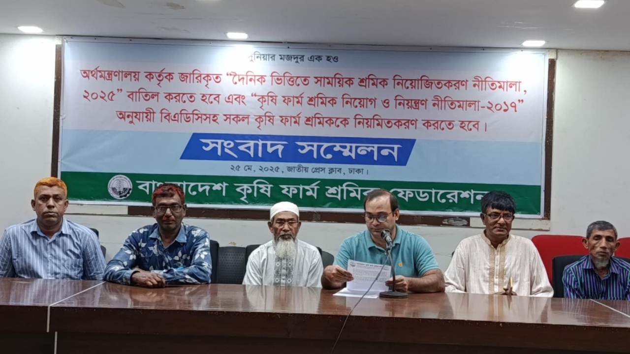 দৈনিক ভিত্তিতে সাময়িক শ্রমিক নিয়োজিতকরণ নীতিমালা-২০২৫ বিভ্রান্তিকর, অসম্পূর্ণ এবং শ্রমিক শোষণের অপকৌশল বলে অভিহিত করেছে বাংলাদেশ কৃষি ফার্ম শ্রমিক ফেডারেশন।