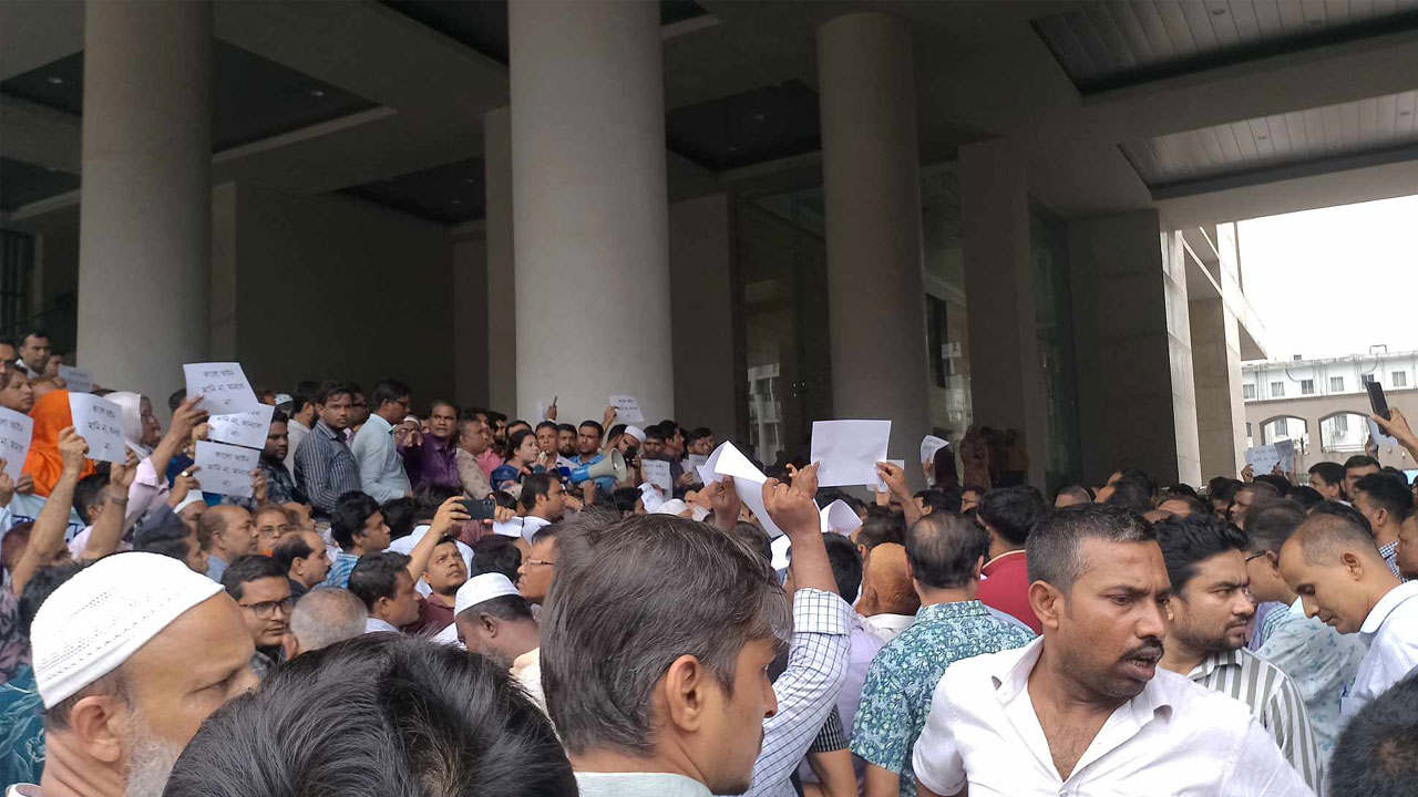 সচিবালয়ের সব গেট বন্ধ, আজও বিক্ষোভ করছেন কর্মকর্তা–কর্মচারীরা