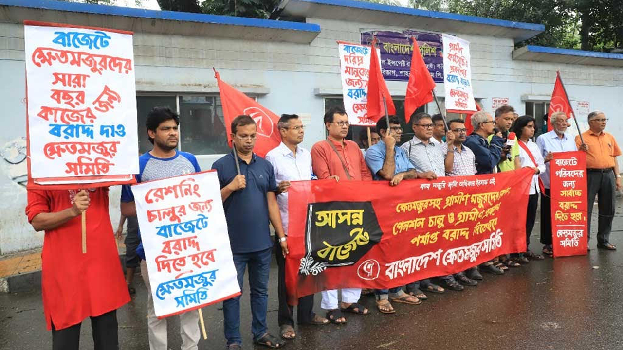 আসন্ন বাজেটে গ্রামীণ প্রকল্প ও কর্মসূচীতে পর্যাপ্ত বরাদ্দের দাবি জানিয়েছে বাংলাদেশ খেতমজুর সমিতি। শুক্রবার (৩০ মে) জাতীয় প্রেসক্লাবের সামনে আয়োজিত এক বিক্ষোভ সমাবেশে এ দাবি জানানো হয়।