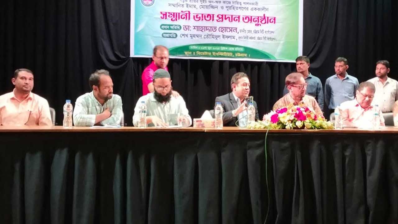 রোববার (১ জুন) চট্টগ্রাম থিয়েটার ইনস্টিটিউটে আয়োজিত এক অনুষ্ঠানে তিনি এ কথা বলেন। অনুষ্ঠানে নগরের বিভিন্ন এলাকার ১ হাজার ৩৩৮ জন ইমাম, মুয়াজ্জিন ও পুরোহিতের মধ্যে সড়কবাতি চালু ও বন্ধের দায়িত্ব পালনের জন্য সম্মানিভাতা দেওয়া হয়।