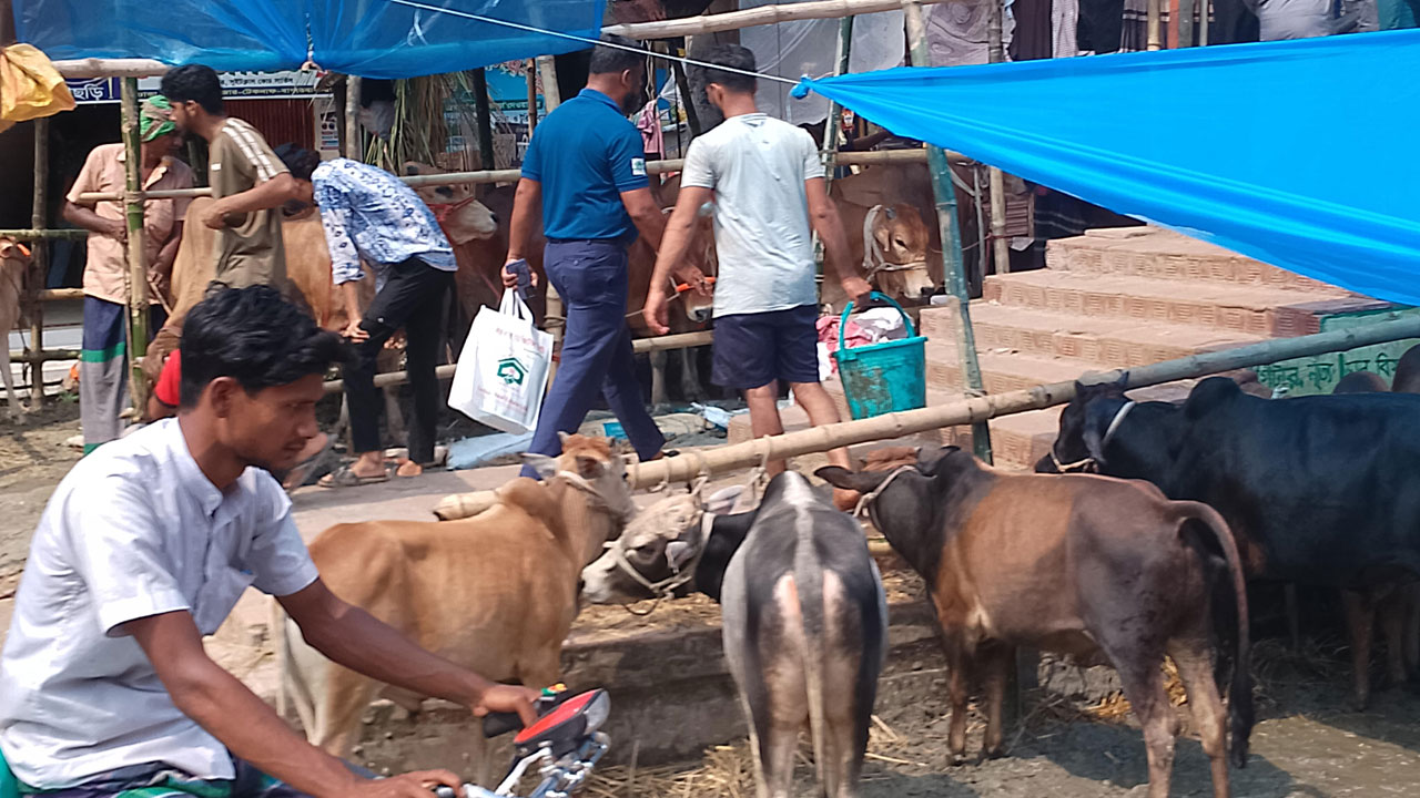 মঙ্গলবার (৩ জুন) দুপুরে হাট ঘুরে দেখা যায়, ক্রেতারা আসছেন পশু দেখতে ও দাম যাচাই করতে। বেশিরভাগই এখন কোনো পশু কিনছেন না। আর ক্রেতার সংখ্যাও এখনো কম।