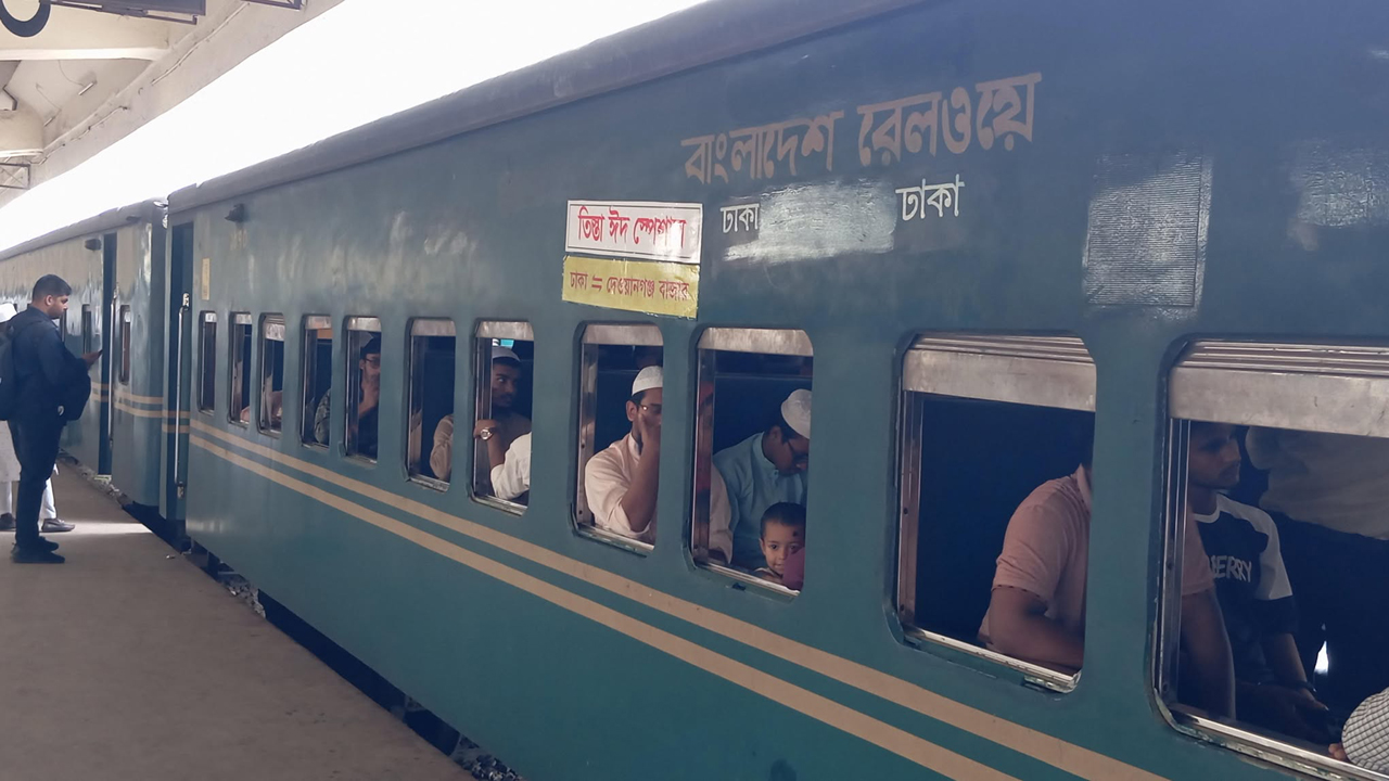 বুধবার (৪ জুন) ঢাকা রেলওয়ে স্টেশন ঘুরে দেখা যায়, সকাল ৯টা থেকে ৩ নম্বর প্লাটফর্মে দেওয়া ছিল ট্রেনের রেকটি। আর ট্রেনের আসনের টিকিট বিক্রি করা হয়েছিল আরও ১০ দিন আগেই। ট্রেনটিতে ‘সুলভ’ শ্রেণীর কোচ যুক্ত ছিল। প্রতিটি কোচে আসনের বেশি মানুষ ছিল।