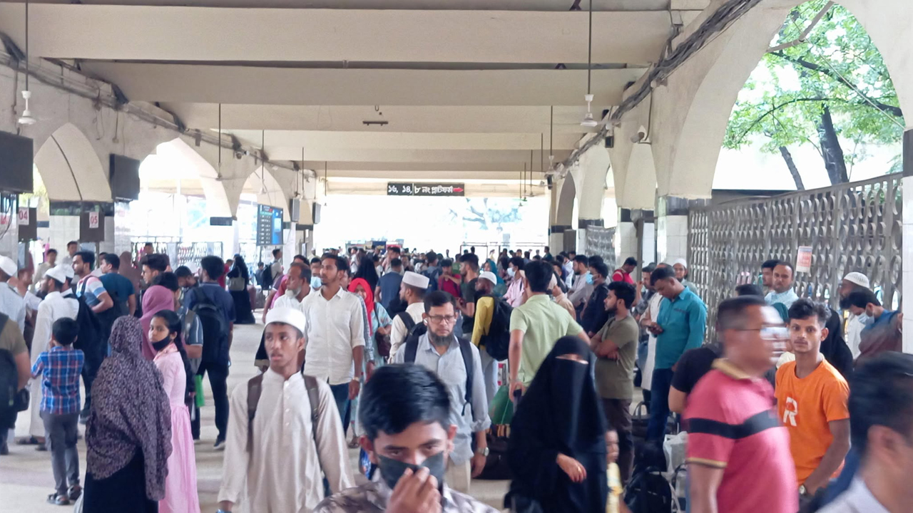 একটি বেসরকারি প্রতিষ্ঠানে চাকরি করেন সাজেদুল ইসলাম, ঈদের আগে আজ শেষ কর্মদিবস তার আজ। তিনি বলেন, খুব কষ্টে অনেক ট্রাই করে আজ রাতের লালমনি এক্সপ্রেস ট্রেনের টিকিট কাটতে পেরেছিলাম নির্ধারিত দিনেই। রাত ৯টা ৪৫ মিনিটের ট্রেন ধরার জন্য অফিস শেষ করে বাসায় গিয়ে পরিবার সহ বের হবো। আমরা যদিও আসনের টিকিটি পেয়েছি, তবুও ভয় পাচ্ছি। কারণ আজকের রাতের ট্রেনগুলোতে যাত্রীর সবচেয়ে বেশি ভিড় হবে। আমরা টিকিট পেয়েও ট্রেন উঠতে পারবো কী না বা নিজের সিটের কাছে পৌঁছাতে পারবো কী না তা নিয়ে শঙ্কিত। আমার পরিচিত যত জনের সঙ্গে কথা হয়েছে তারা জানিয়েছে আজ তারা ঢাকা ছেড়ে গ্রামের বাড়ি যাবে, ফলে আগে থেকেই ধারণা করে নেওয়া যায় আজ সবচেয়ে বেশি মানুষ ঢাকা ছাড়বে।