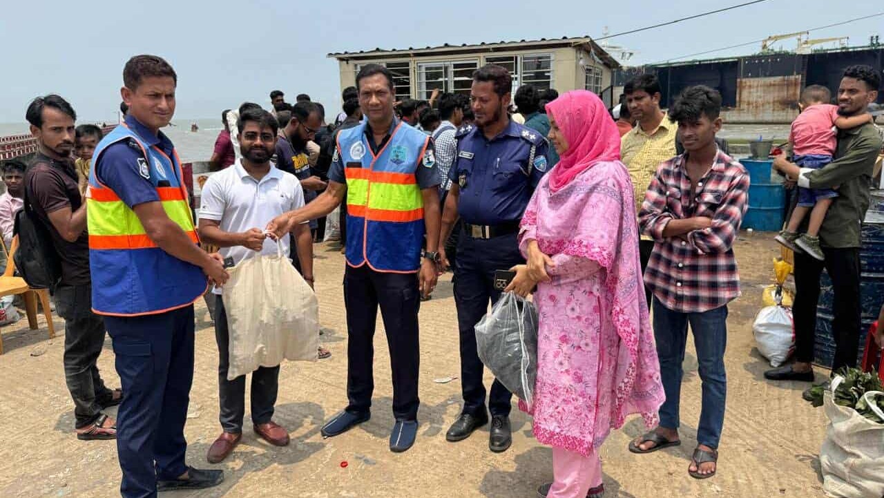 বৃহস্পতিবার (৫ জুন) ঈদযাত্রায় নদীপথে যাতায়াত নিরাপদ ও পরিবেশবান্ধব করতে সিঙ্গেল ইউজ প্লাস্টিক বর্জনের লক্ষ্যে এমন সচেতনতামূলক কার্যক্রম চালানো হচ্ছে।