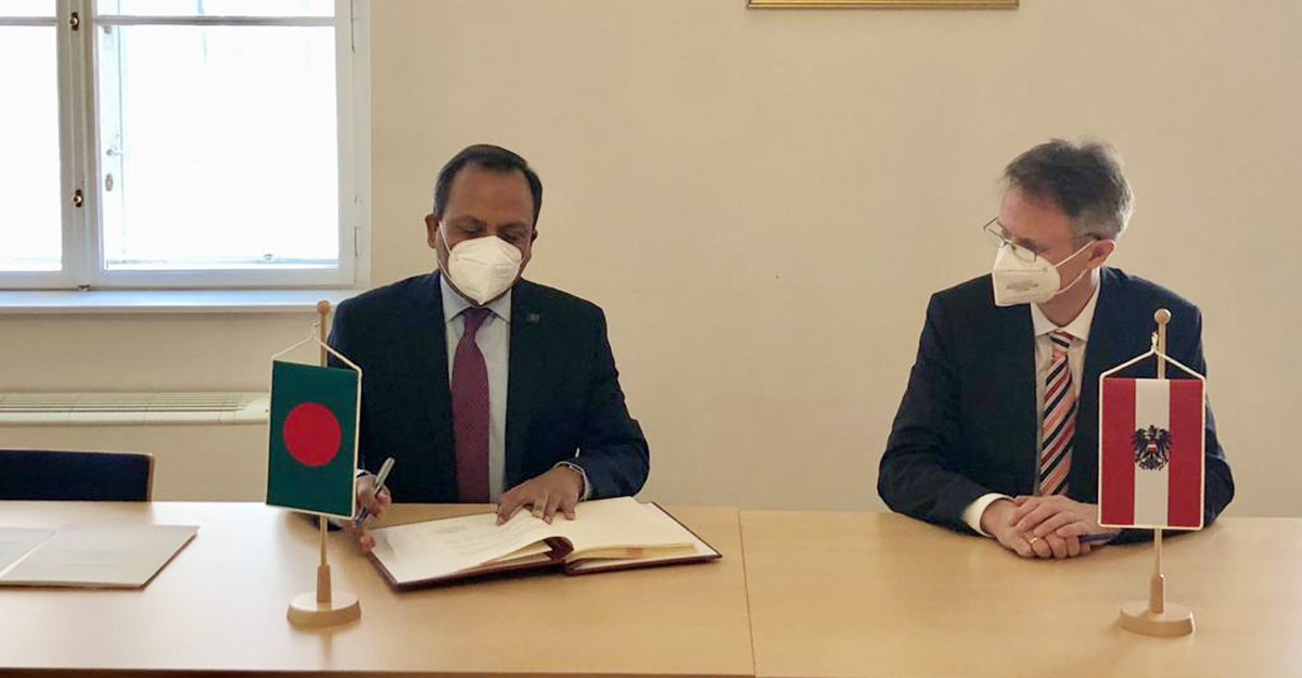 অস্ট্রিয়ায় নিযুক্ত বাংলাদেশের রাষ্ট্রদূত মুহাম্মদ আবদুল মুহিত এবং অস্ট্রিয়ান রাষ্ট্রদূত আন্দ্রেয়াস রিয়েকেন চুক্তিতে সই করেন