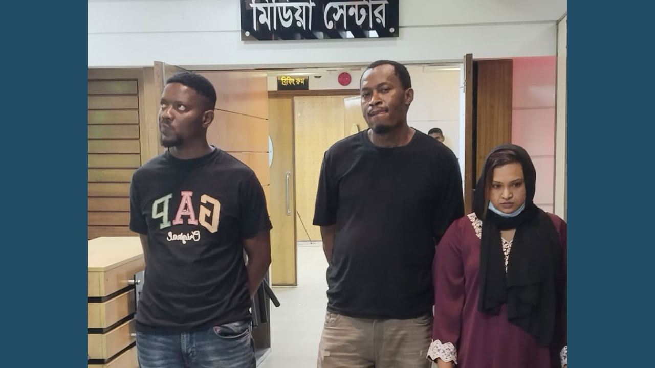গ্রেপ্তার নাইজেরিয়ান নাগরিকরা হলেন- ফ্রাঙ্ক কোকো ও ইমানুয়েল। এছাড়া গ্রেপ্তার বাংলাদেশি নারীর নাম সুইটি আক্তার।