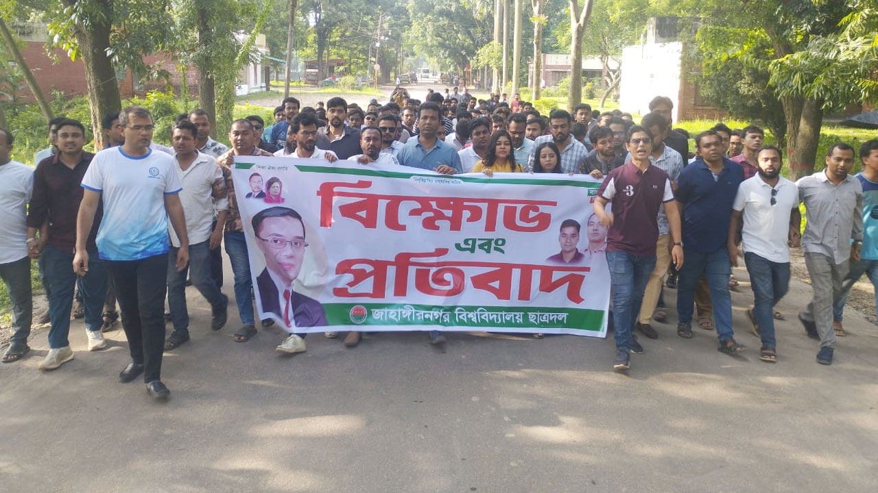 শনিবার (১২ জুলাই) বিকেল সাড়ে চারটার দিকে বিশ্ববিদ্যালয়ের পরিবহন চত্ত্বর এলাকা থেকে মিছিল বের করেন তারা। মিছিলটি শহীদ মিনার এলাকায় গিয়ে শেষ হয়। পরে সেখানে সমাবেশ করেন তারা। সমাবেশটি সঞ্চালনা করেন ছাত্রদল জাবি শাখার সদস্য সচিব ওয়াসিম আহমেদ অনিক।