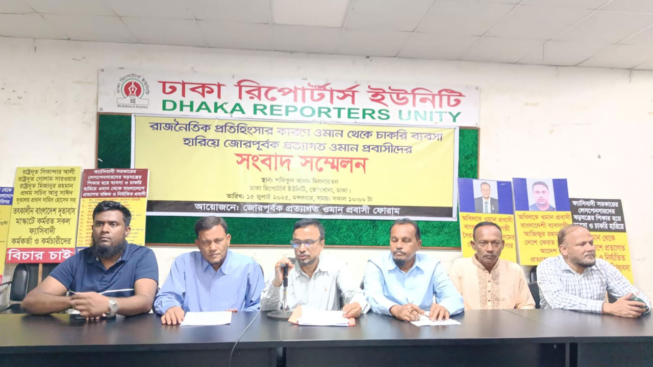 মঙ্গলবার (১৫ জুলাই) ঢাকা রিপোর্টার্স ইউনিটিতে এক সংবাদ সন্মেলনে এ অভিযোগ করেন প্রত্যাগত ওমান প্রবাসী ফোরাম।